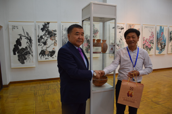 向吉國議員贈送彩陶雙聯(lián)壺留念